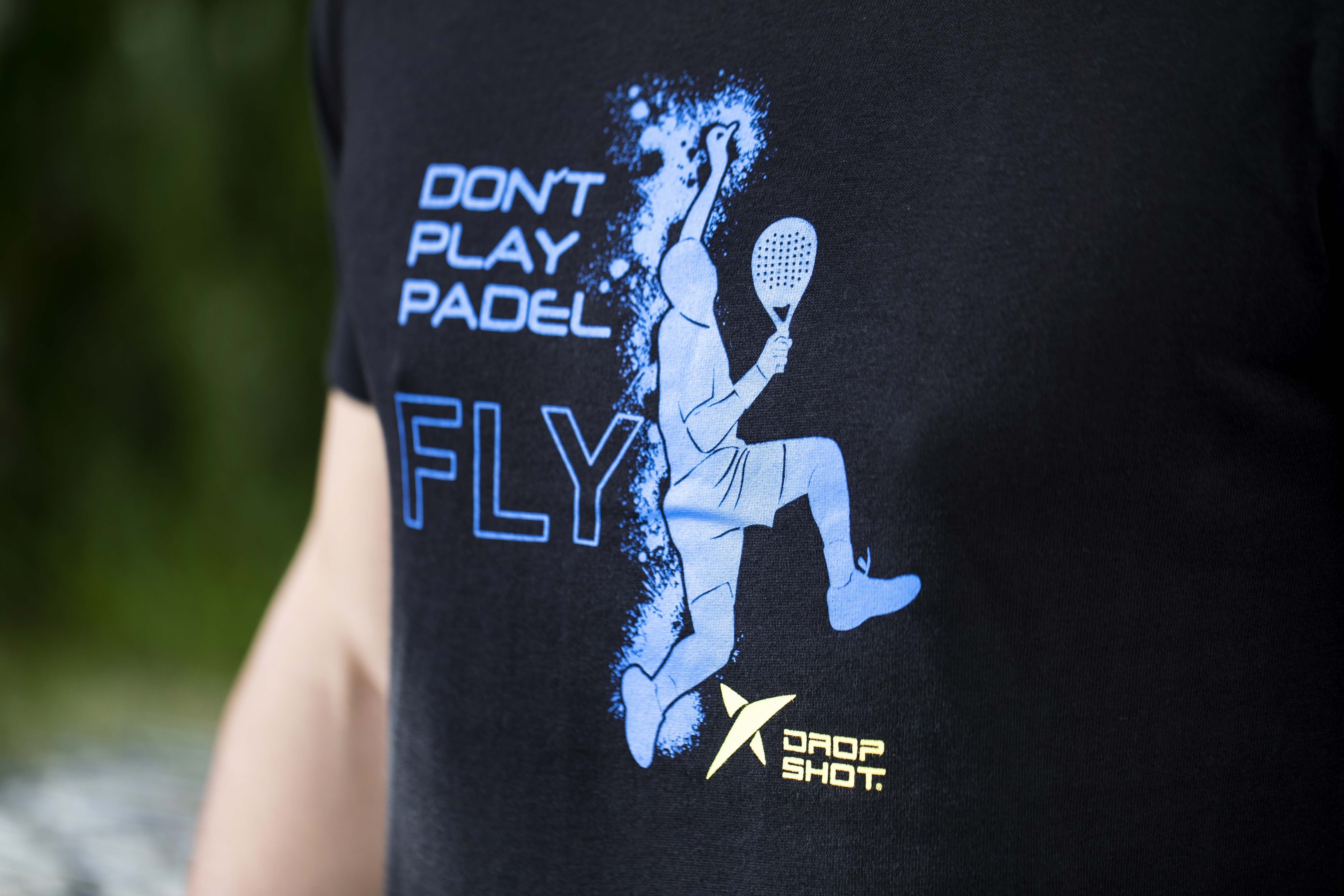 Dentro de la colección de textil de pádel Drop Shot encontramos la camiseta de pádel Fly, una camiseta de entrenamiento moderna con detalles en azul.