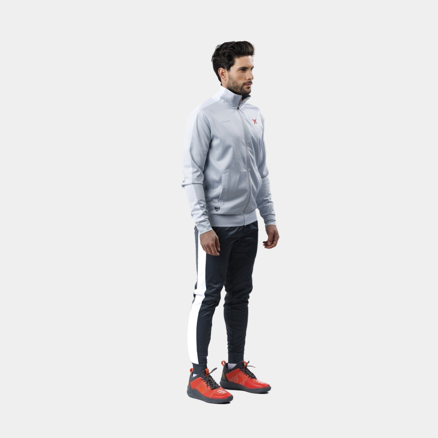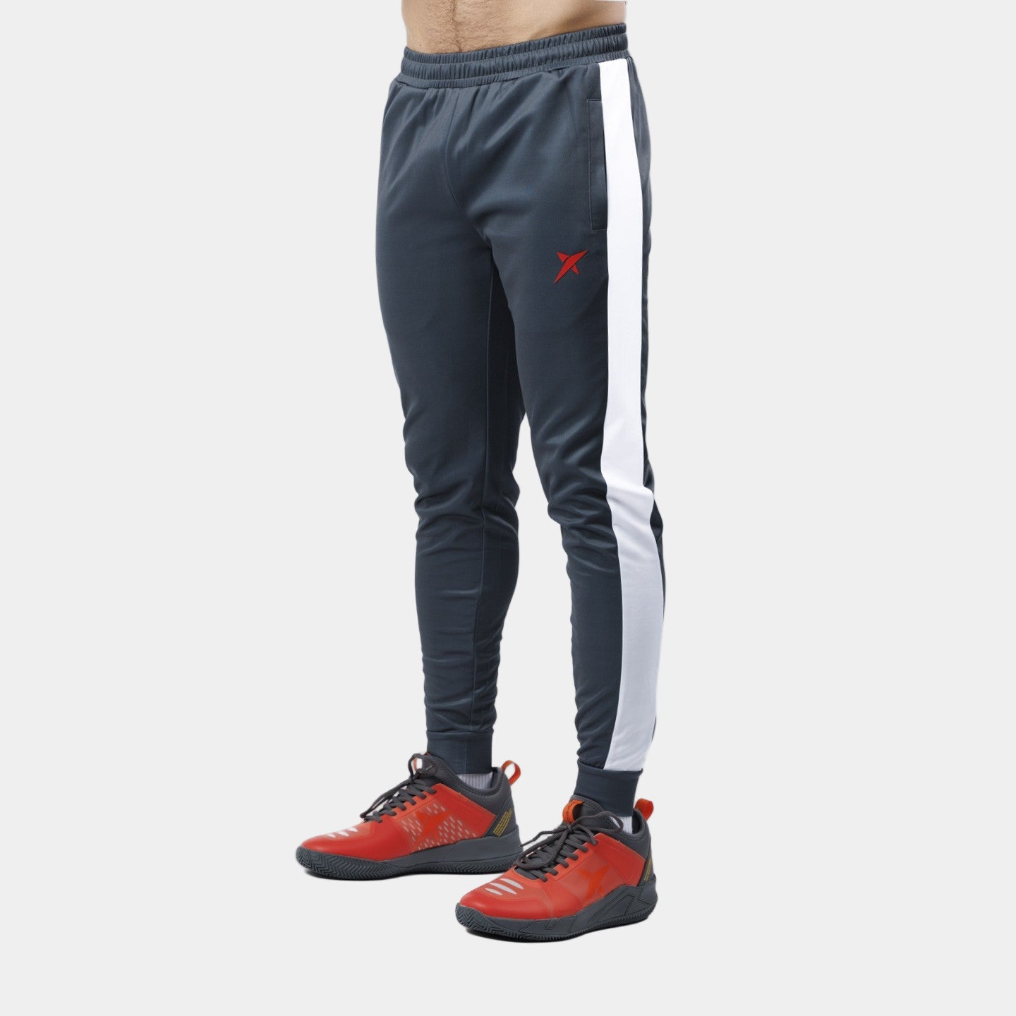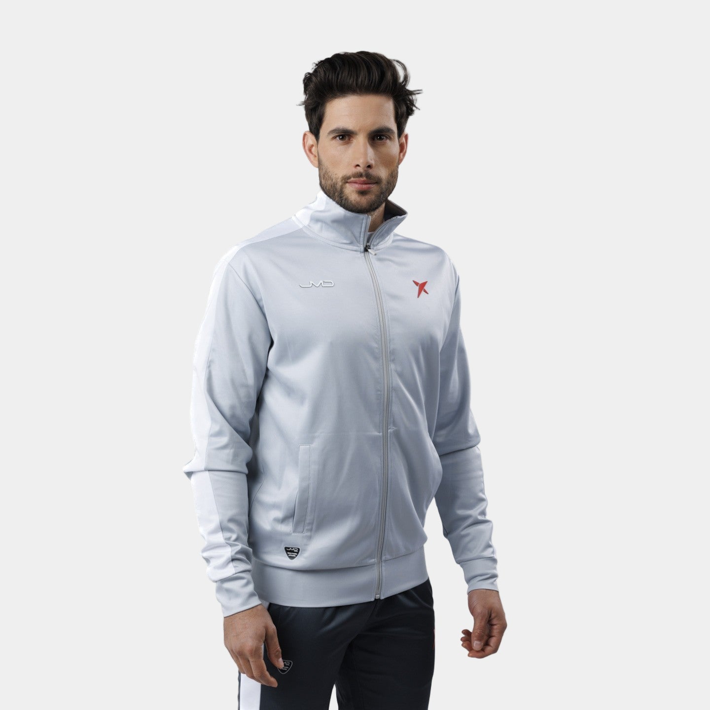 El Chándal Drop Shot Airam JMD se compone de un conjunto de dos piezas que combina tonos grises, blancos y rojos. por un lado tenemos la chaqueta con cremallera central y bolsillos a ambos lados. La parte inferior se compone de un pantalón largo que incorpora una cintura ajustable por medio de un cordón que permite ceñirse a la perfección a cada cuerpo. La prenda incorpora un bolsillo a ambos lados y un puño en la parte inferior que facilita la sujeción y el agarre.