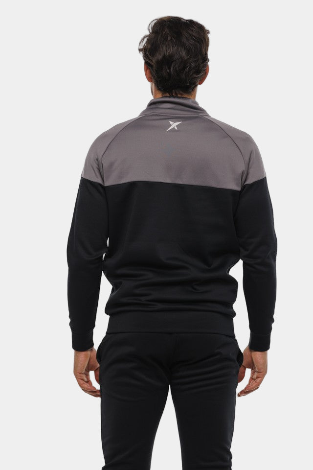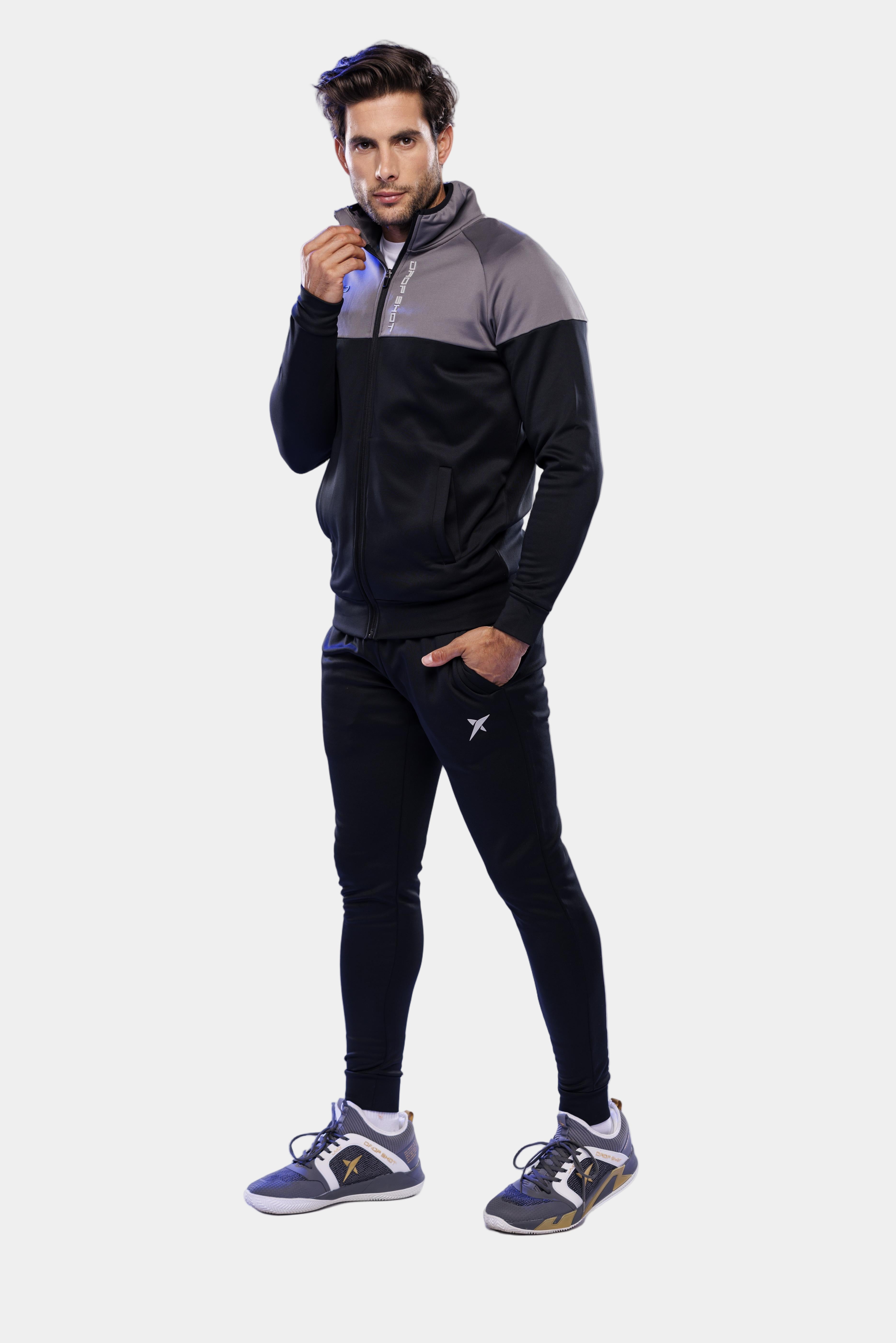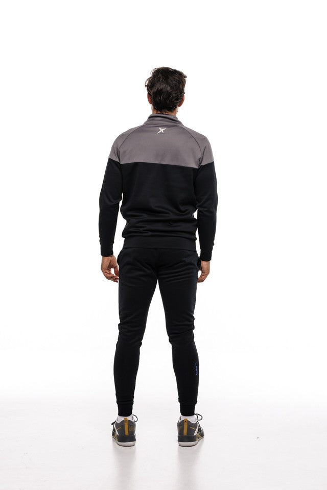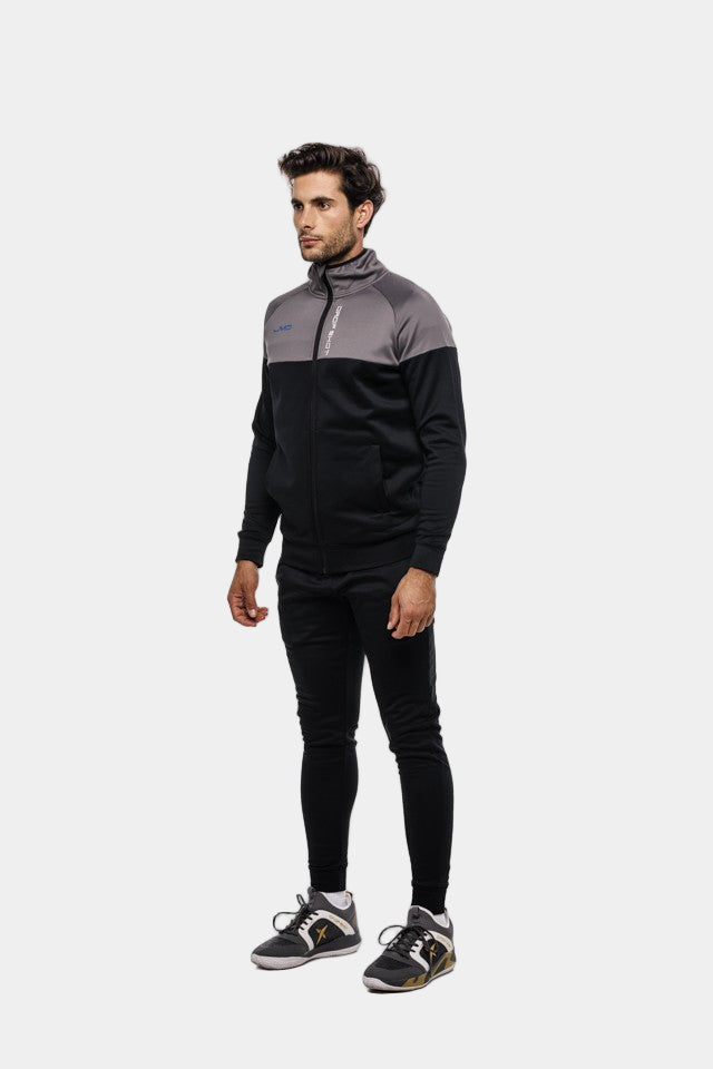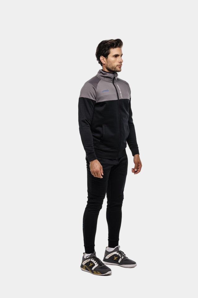 El Chándal Drop Shot Ancor JMD no solo sorprende por su insuperable calidad, sino que también muestra un estiloso diseño en tonos grisáceos y negros. Se trata de una combinación perfecta entre el pantalón de chándal negro, el cual cuenta con una cómoda goma en el tobillo que se ajusta a la perfección al cuerpo del jugador, con la chaqueta de chándal negra, que luce su parte superior en tono grisácea. La chaqueta se estiliza con una media cremallera, y ambas prendas van rematadas con el logo de la marca y de la línea de Juan Martín Díaz, impresos en 3D.