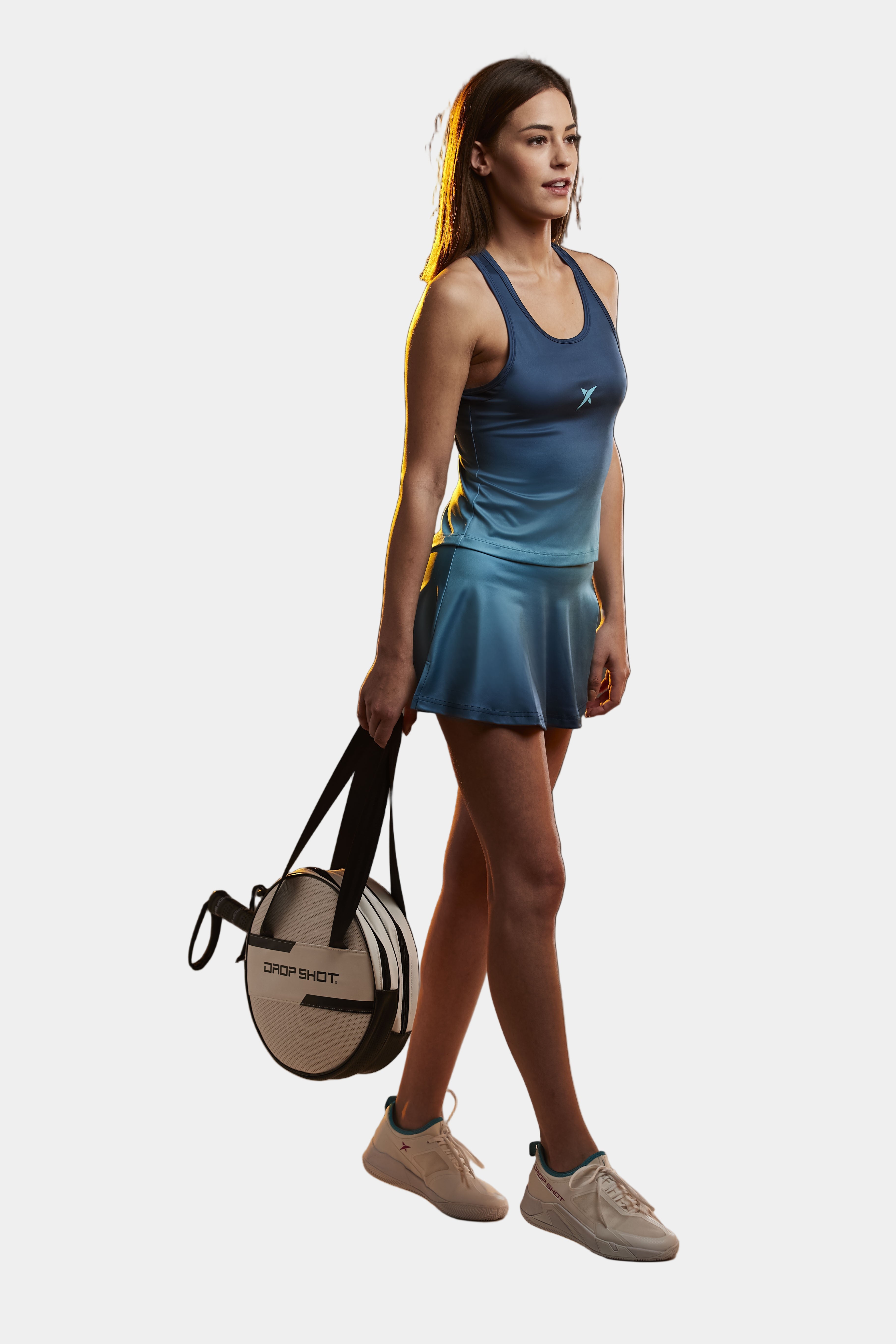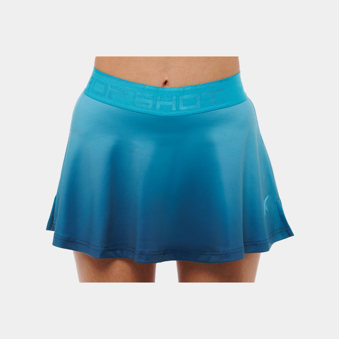 Este modelo aporta un plus de estética con su característico degradado en todos azules, junto con el logo impreso en silicona en tono azul turquesa en dimensión 3D. Además garantiza la comodidad gracias a la cinta elástica de la cintura, personalizada con el nombre de la marca, y el short de su interior, con bolsillo para guardar la pelota, que aporta a la jugadora la seguridad que necesita en su juego.