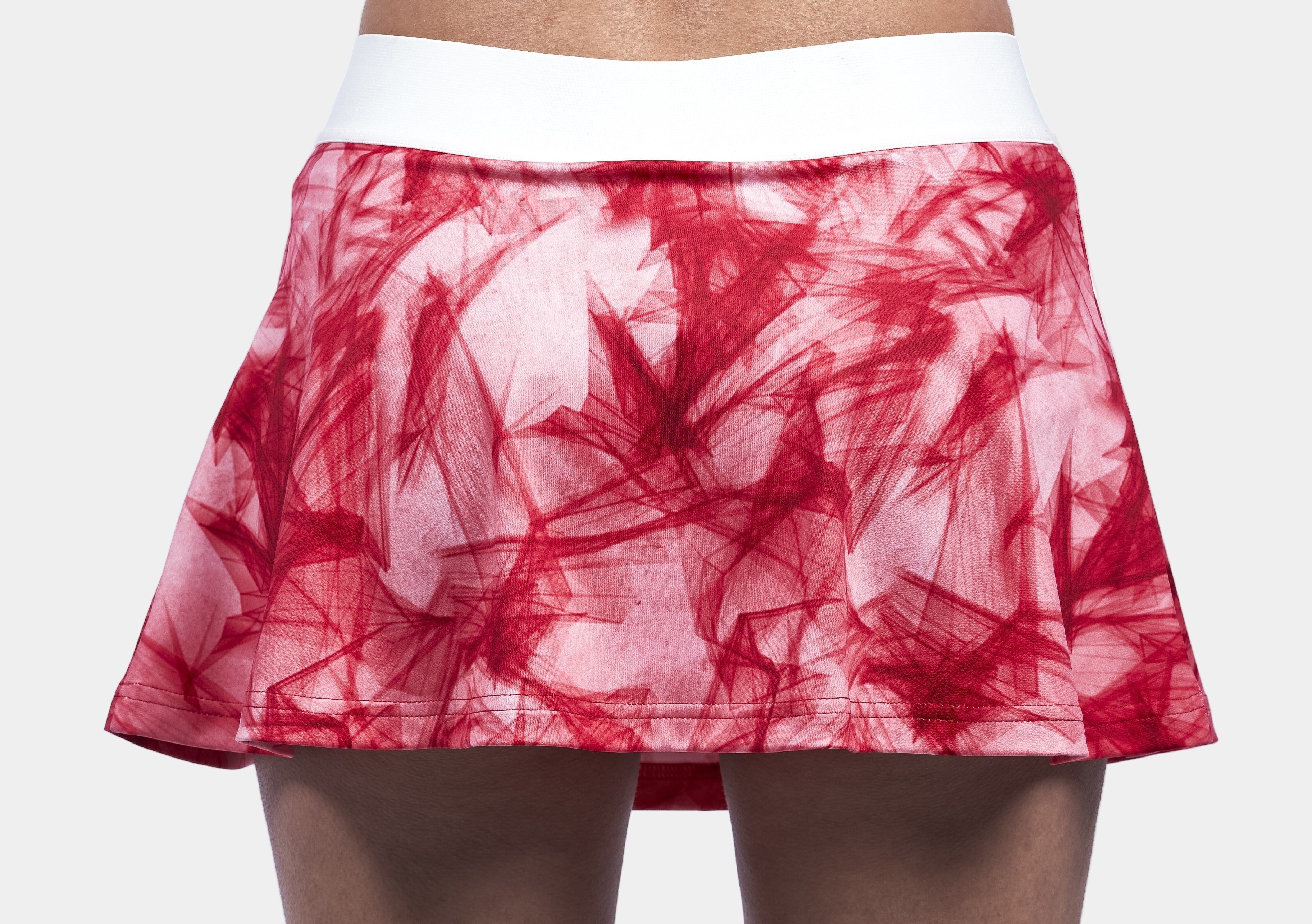 La nueva falda Lyra en color rojo Lyra combina un tejido de poliéster y spándex con costuras planas y aporta elasticidad y libertad de movimiento para los partidos más exigentes.