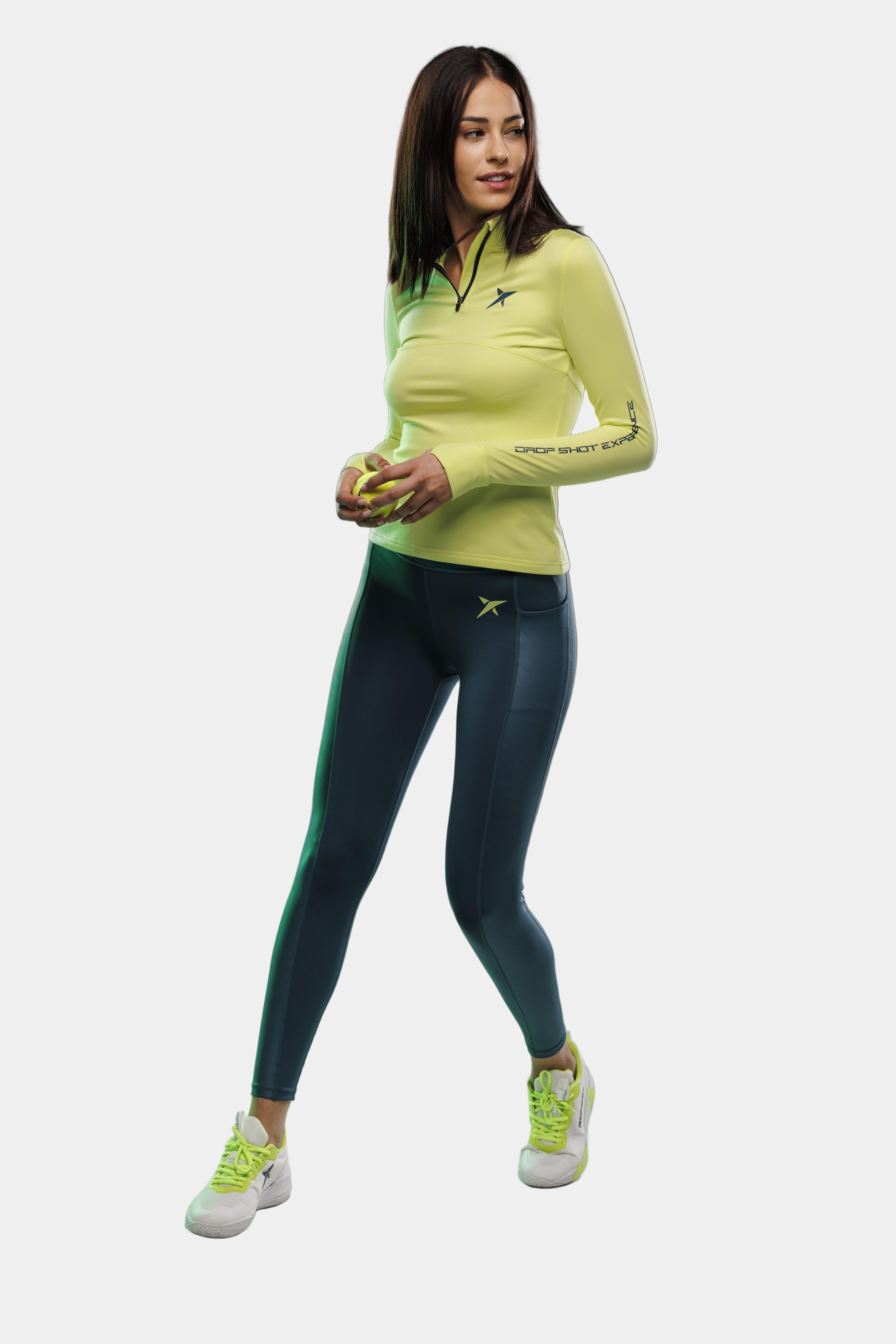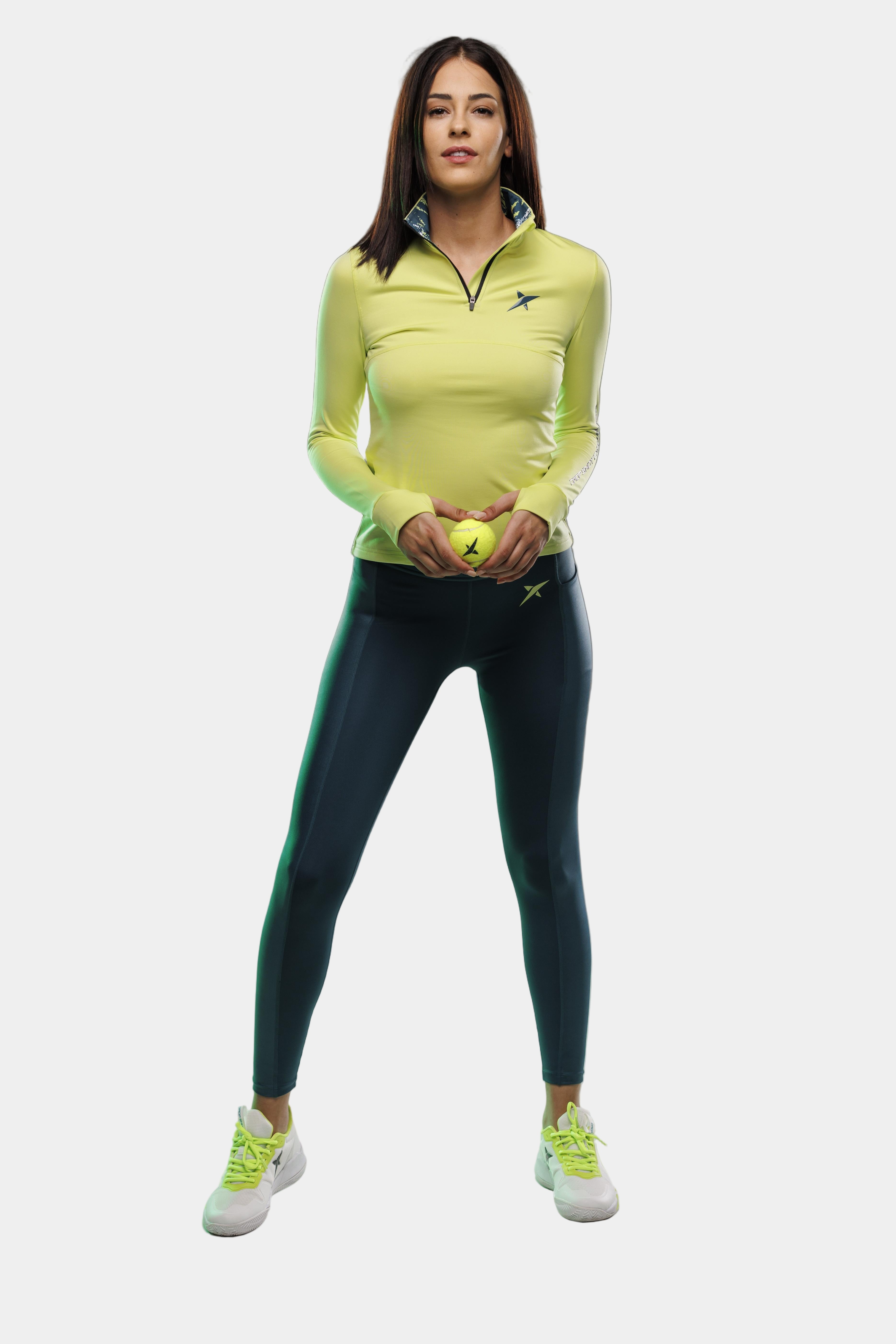 La Malla Drop Shot Famara luce elegante y distinguido diseño que combinará a la perfección con múltiples prendas. De pierna entera, combina su tonalidad verde con la impresión de detalles en silicona 3D del amarillo flúor.
