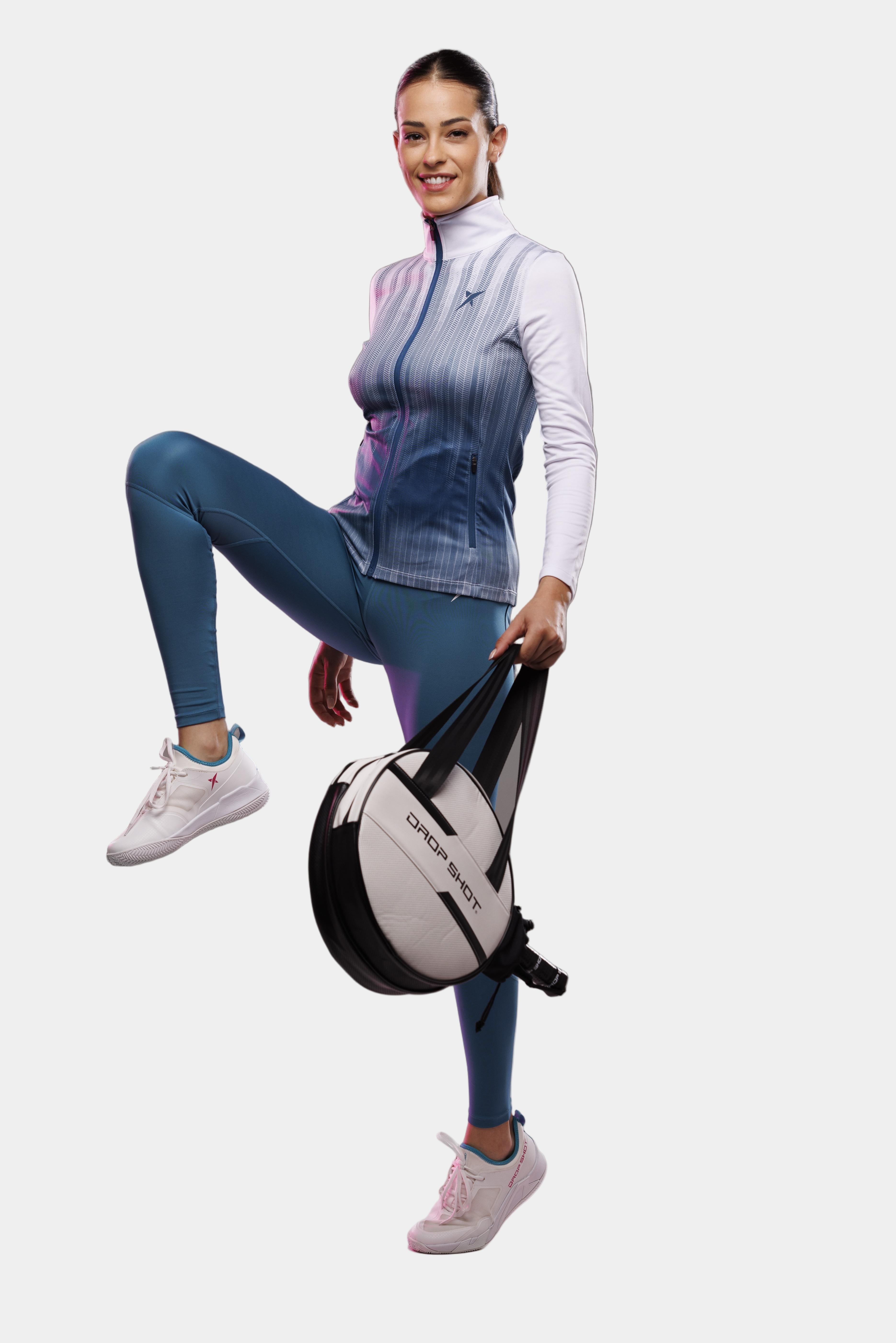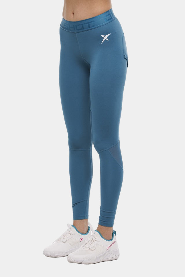 Ha sido diseñado en un llamativo tono azul a juego con el resto de la línea Isora. En la parte interior de la prenda se incorpora tejido Mesh, permitiendo a la jugadora lucir un estilo moderno y atractivo. La cintura se remata con una goma personalizada con el nombre de la marca, y en la parte superior se imprime en silicona 3D el logo de Drop Shot en tono blanco.