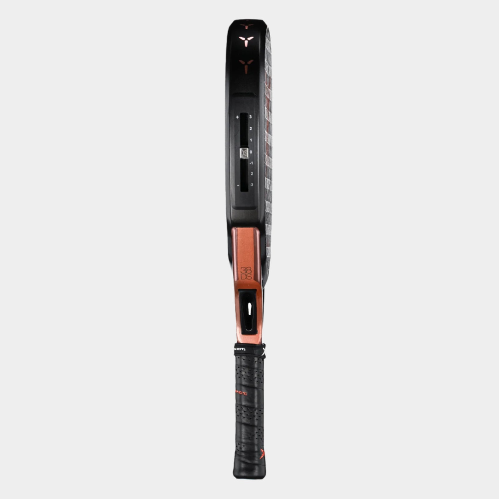 Se ha diseñado con un molde de lagrima y una goma Eva Pro en su interior, una goma cuya propiedad principal es la sensación de control. Con una velocidad alta de la bola, se consigue una mayor potencia. Ambas cualidades aportan un equilibrio medio alto alto encaminado hacia la cabeza de la pala. Sus caras se componen de Carbono 24K Twill ; un carbono de última generación de 24.000 filamentos por cada hilo de carbono. Se trata de un entretejido tipo sarga flexible y resistente. Se caracteriza por ser plano, extra fino y flexible, lo cual proporciona un mayor control y ligereza, produciendo una reacción más rápida al momento del golpeo con la pelota.