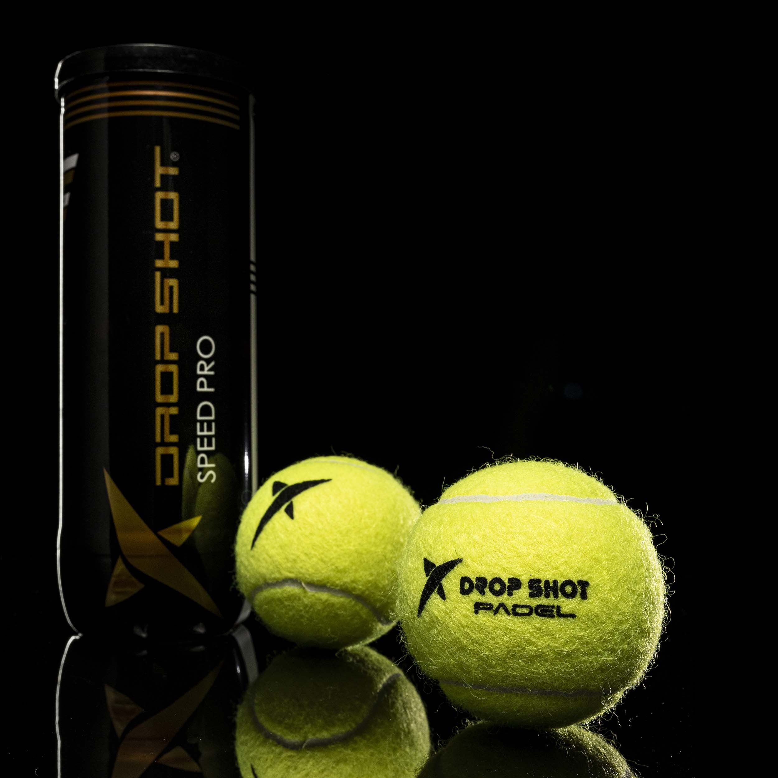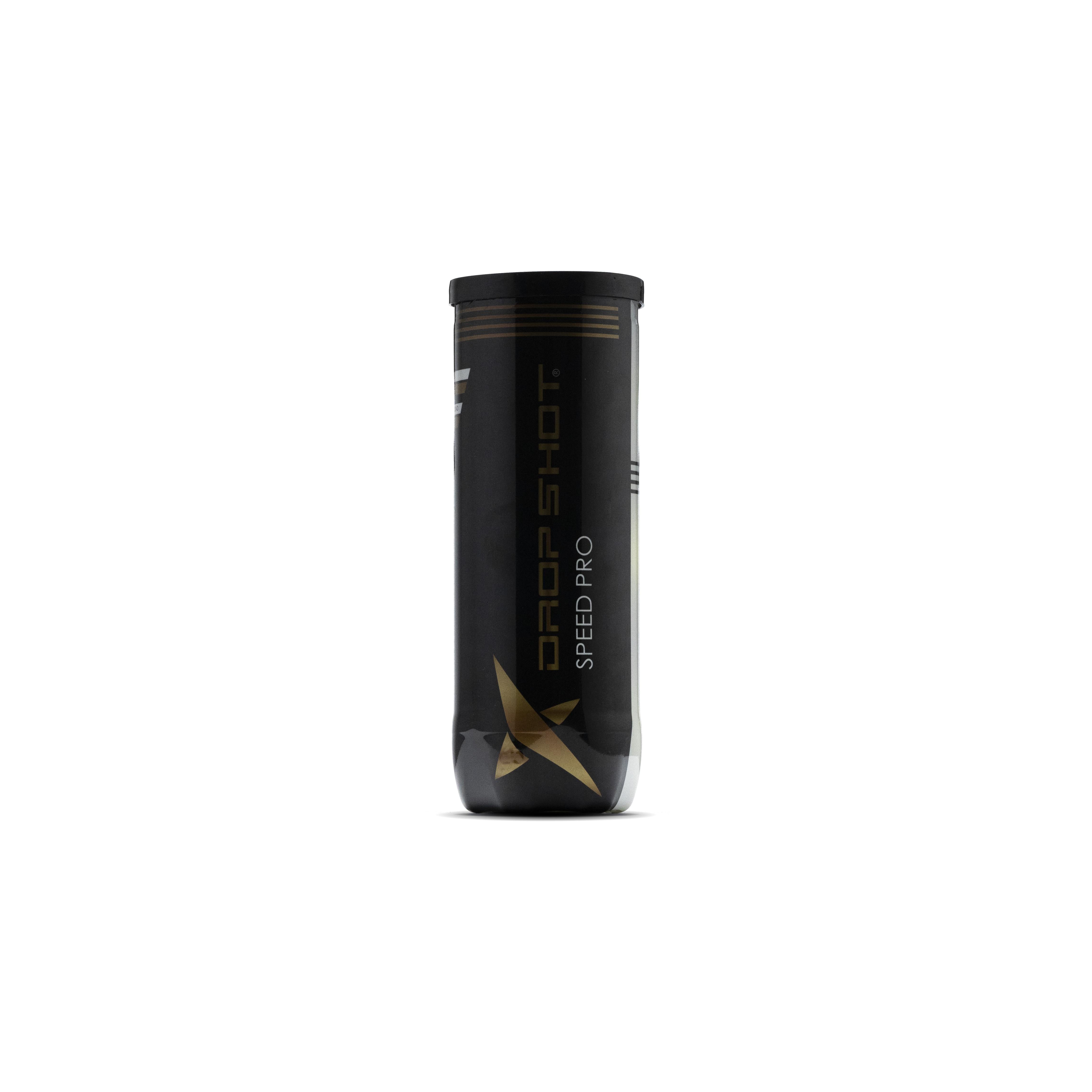 La Pelota Drop Shot Speed Pro se caracteriza por aportar una mayor velocidad debido a los materiales que la componen. Se comercializan en tubos de tres pelotas.