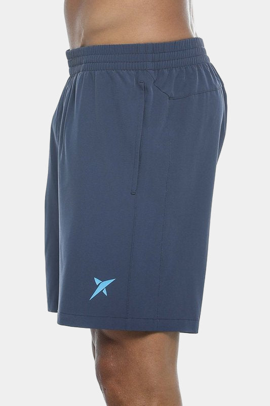 En la colección de textil de pádel Drop Shot encontramos el short de pádel Brais, un modelo con cinturilla elástica y logo a contraste de color azul, bolsillos laterales con banda lateral negra.