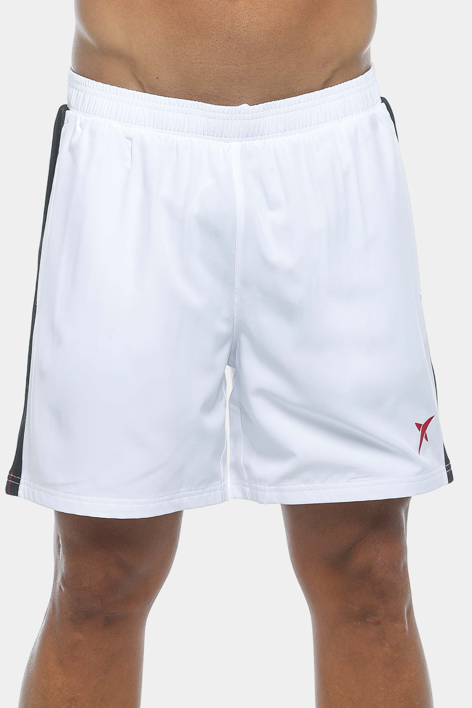 En la colección de textil de pádel Drop Shot encontramos el short de pádel Drac, un modelo con cinturilla elástica y logo a contraste de color rojo, bolsillos laterales con banda lateral negra.