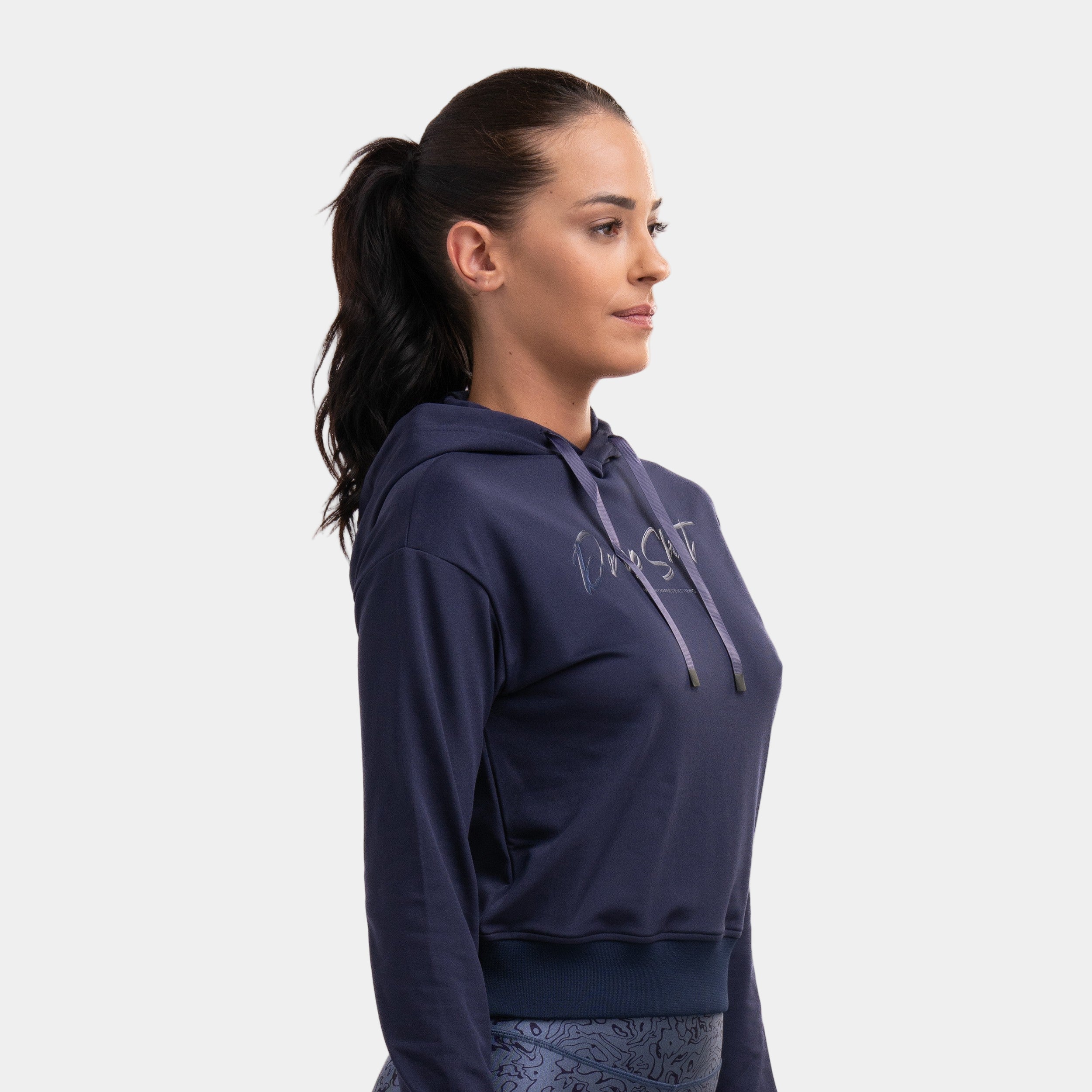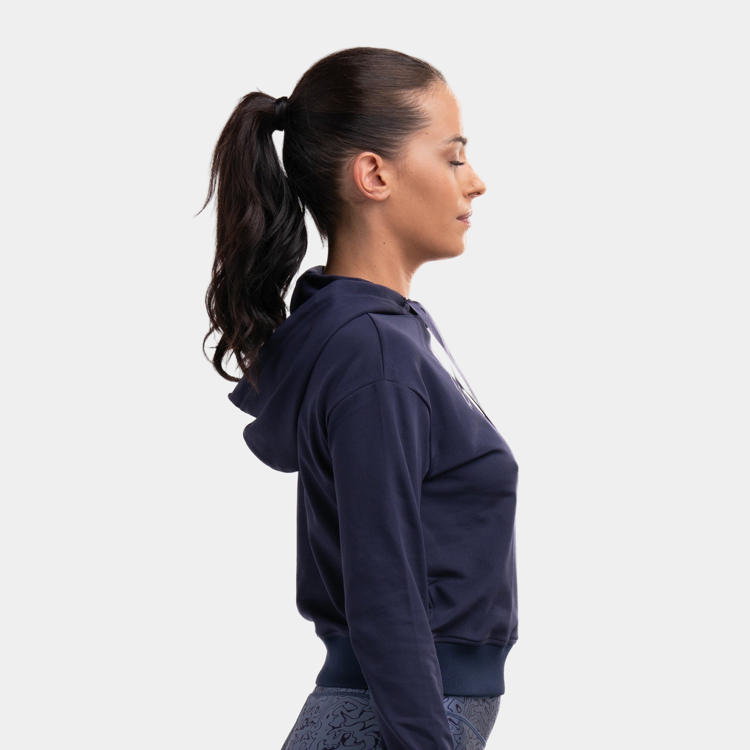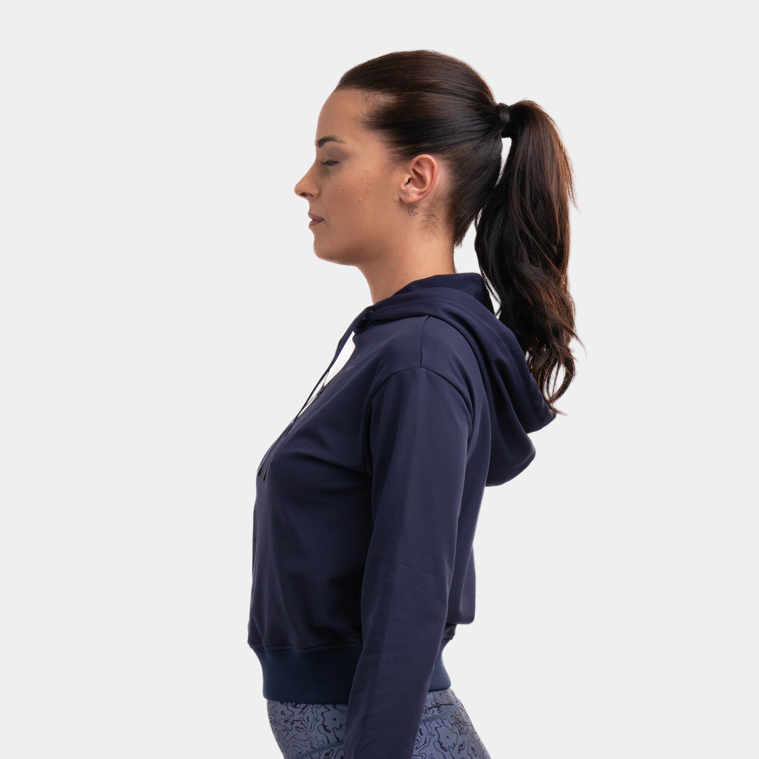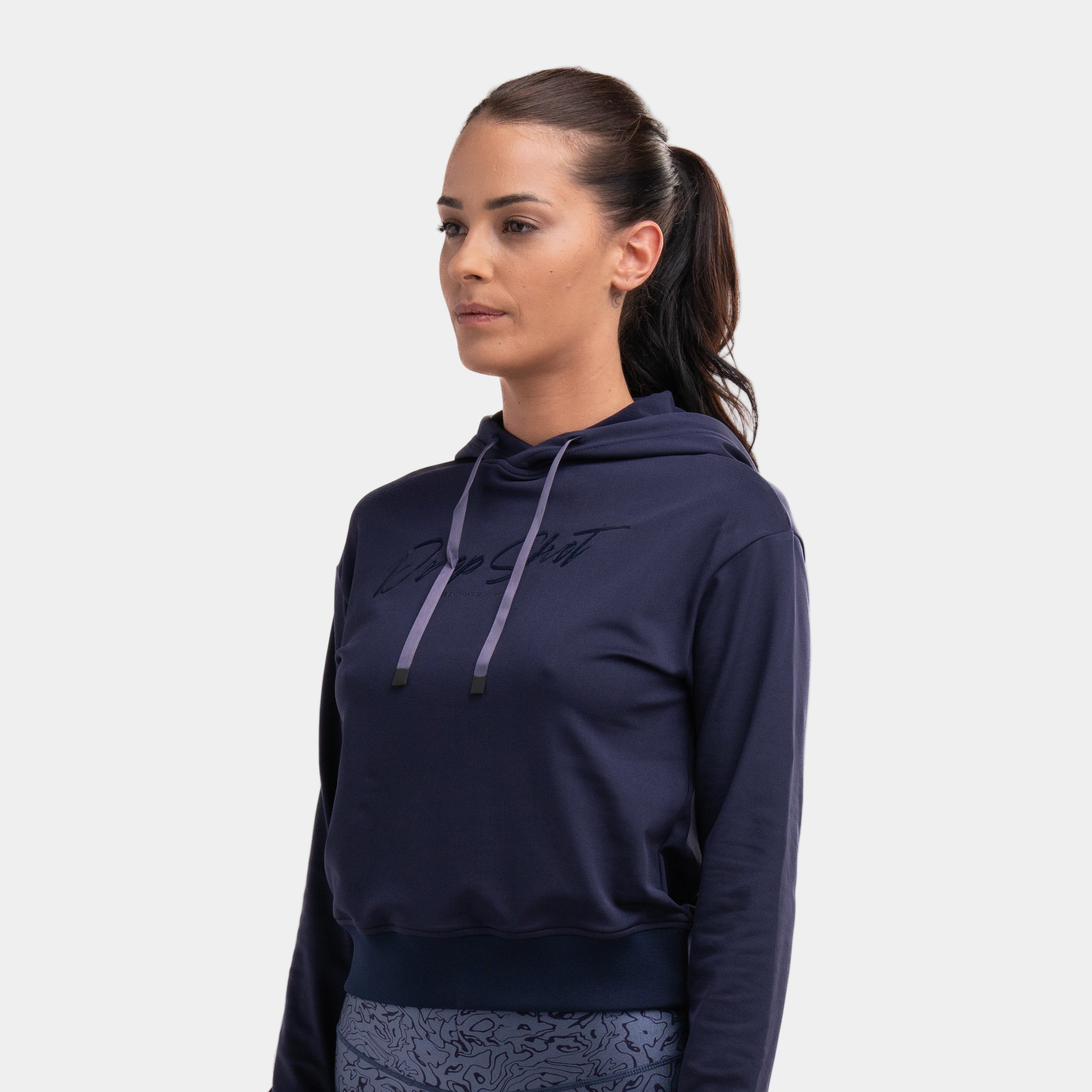 En cuanto a su diseño, la Sudadera Drop Shot Cora se podría denominar como lifestyle ya que podrás ponerla en múltiples momentos de tu día a día. Predomina el color azul marino sobre el que se imprime en tono brillante el nombre de Drop Shot. Además, la prenda cuenta con una capucha ajustable por medio de cordones.